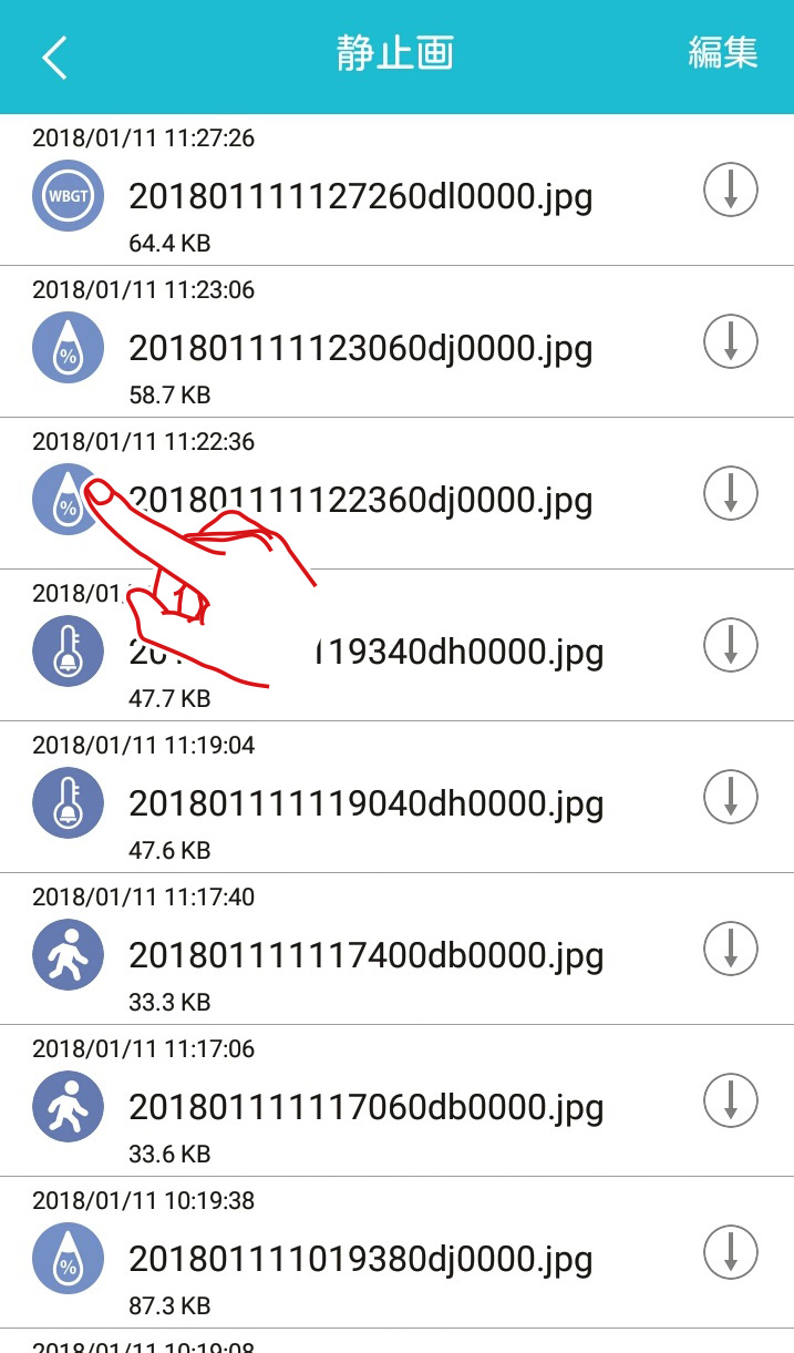 この部分をタップするとWBGT (図32) / 温度 (図33) / 湿度 (図34) のグラフを見ることができます。